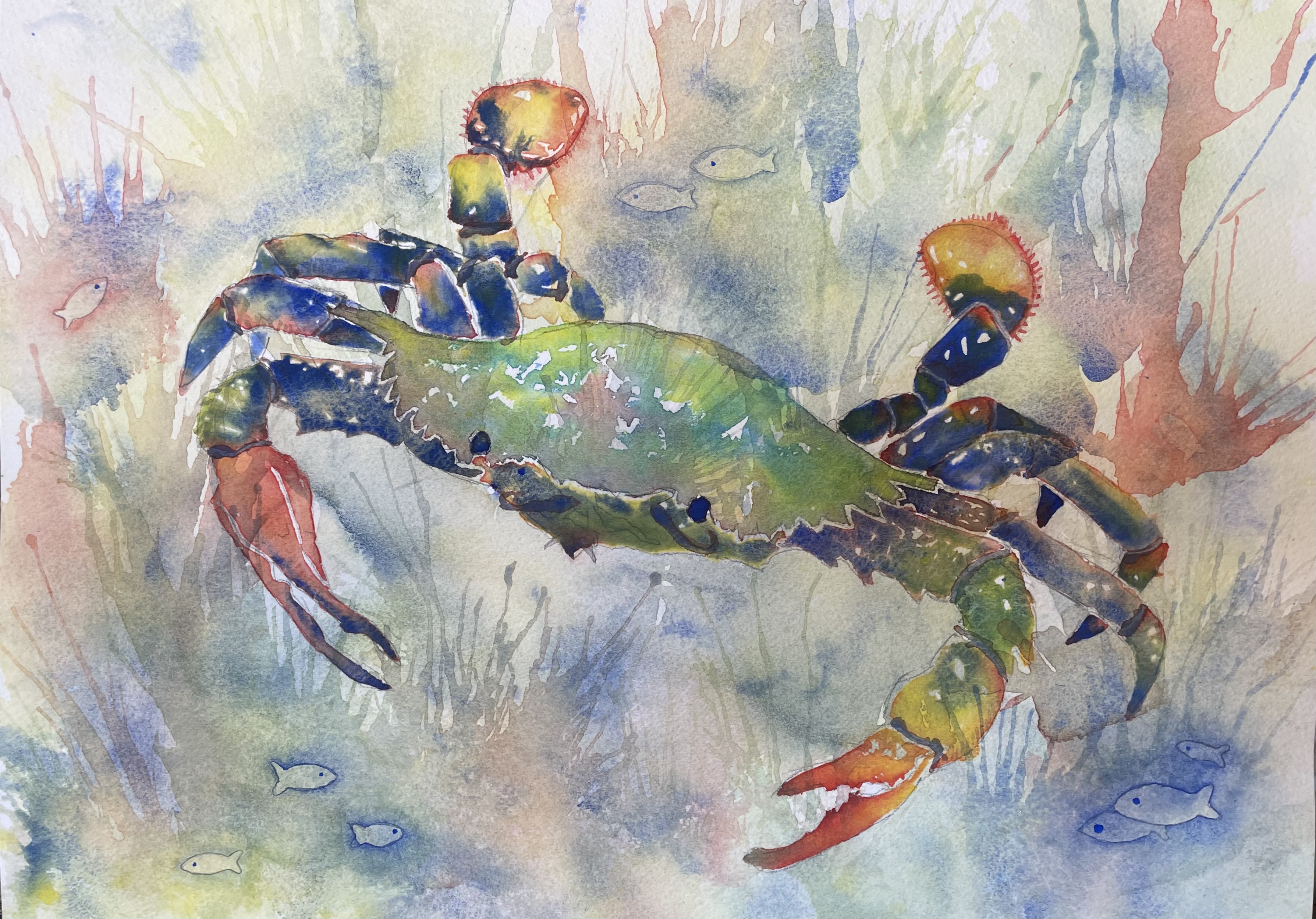 “Colorful Crab” 2021, Watercolor on paper, 8inx10in